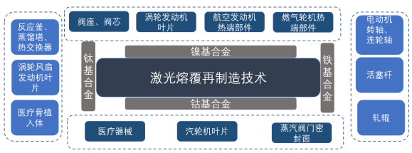 激光熔覆技術(shù)廣服務(wù)于航空航天領(lǐng)域、石油化工行業(yè)、汽車工業(yè),模具制造領(lǐng)域的表面改性及表面修復(fù)需求。
